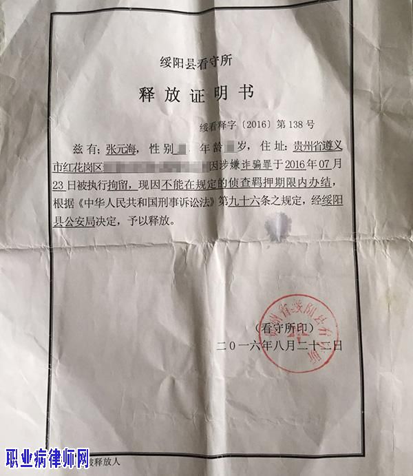 【特别声明:以下图文均来自澎湃新闻】 贵州遵义三名尘肺病诊断医生被抓一案持续发酵。 6月27日,澎湃新闻(www.thepaper.cn)独家获悉,在贵州航天医院三位医生被刑拘前,即2016年7、8月,涉事企业——绥阳县枧坝镇福来煤矿(下称福来煤矿)至少有7位被诊断为尘肺病的矿工因“涉嫌诈骗”被抓,羁押一个月后均获取保候审。 澎湃新闻记者联系上其中的部分矿工,他们表示如今仍受尘肺病困扰,并否认警方指控的罪名。 被抓矿工的律师屠金伟告诉澎湃新闻,这些被诊断的矿工都是福来煤矿出具委托书后,到指定医院进行诊断的,并未参与所谓骗取社保基金。而他们获取保候审后将近两年,警方对于案件“没有一个说法”,让一些矿工忧心忡忡。 6月27日、6月28日,澎湃新闻多次致电绥阳公安局。6月28日上午,绥阳公安局办公室一位工作人员称,她可以将问题转达政工处室。截至发稿未获答复。 福来煤矿给矿工们出具的诊断委托书。 被抓旷工:诊断的航天医院系煤矿委托指定 2016年初,贵州贵遵律师事务所律师屠金伟接手一起职业病诉讼案件,福来煤矿19名被诊断为尘肺病的矿工,向所在企业主张自己的权利,希望根据国家相关法律获得赔偿。 屠金伟告诉澎湃新闻,在与企业的谈判过程中,企业态度强硬,一直认为诊断结果存在问题,让矿工重新诊断。一些矿工陆续获得赔偿,另一些仍在等待。 2016年7月,包括张元海在内的3名被诊断为尘肺病的矿工,被绥阳县公安带走,涉嫌罪名为诈骗。一个月后,另外4名矿工被绥阳县公安以同样的涉嫌罪名带走。 张海元告诉澎湃新闻,办案人员多次问他,在进行尘肺病诊断期间是否“搞假”,而自己“医院一个人都不认识,哪里能搞假”? 张元海称,去进行职业病诊断是福来煤矿的建议,进行诊断的贵州航天医院,也是煤矿企业指定的,当时福来煤矿还给了200多元的费用。 他提供的一份由福来煤矿2015年6月8日作出的委托书载明:“该职工于2012年3月至2015年4月在我单位从事采煤工作,接触的职业性危害因素为煤尘,现委托贵州航天医院对该职工进行职业病诊断。” 其他两位矿工任云庆和王正富也表示,是在福来煤矿的要求下,他们才前往贵州航天医院进行职业病诊断的。 2015年11月11日,由遵义市劳动能力鉴定委员会出具的鉴定结论书显示:张元海于2015年8月13日经贵州航天医院诊断为:煤工尘肺病一期。鉴定结论为:伤残七级。 根据工伤认定的相关规定,这些被鉴定患职业病的矿工,可以获得相应数额的补助金。但张元海称,相关部门将补助金下发到企业后,企业迟迟未能发到他们手上。 经过多次协调后,到2016年6月,张元海陆续拿到了一次性工伤补助金、一次性医疗补助金和劳动能力鉴定费,共计约98000元。一个月后,他被警方以涉嫌诈骗刑事拘留。 张元海取保候审的释放证明书。 煤矿协助处理职业病工作的人员也曾被抓 这些矿工被抓后,屠金伟到公安机关交涉。警方透露,该案是有人报案后,上级指派调查的。 据多家媒体报道,2016年,有企业举报贵州航天医院尘肺病诊断医生与工人存在“利益关系”,将“非尘肺病”劳动者诊断为“尘肺病”。 之后,贵州省人社厅将此事向贵州省公安厅报案,警方随即成立了专案组,随后有贵州航天医院多位医生被刑事拘留。 多位曾被抓的矿工及家属称,举报的企业即是福来煤矿。 工商登记信息显示,福来煤矿于2004年1月16日成立,注册资金562万元人民币,法定代表人为陈碎明。该公司因违规存在多条行政处罚记录,并涉及13起法律诉讼,其中12起案由为工伤保险待遇纠纷。 2015年度,因未依照《企业信息公示暂行条例》公示年度报告和公司企业信息、隐瞒真实情况、弄虚作假,被贵州省工商行政管理局两度列入经营异常名录。2017年5月,福来煤矿因使用未经检验的压力容器,被绥阳县市场监督管理局处罚款金额5000元。 近日,福来煤矿办公室一位工作人员向澎湃新闻介绍,该企业有矿工200多人,由于当地产业调整,目前煤矿已经关闭。 该工作人员表示,案发后,福来煤矿协助进行职业病处理工作的罗姓工作人员,也被刑事拘留,后被取保。 司法文书显示,前述7名矿工被羁押一个月左右后,也均获取保候审。 屠金伟说,该案早已满了取保候审一年的期限,到今年8月,取保候审就满两年了,但这些被抓的矿工到底有罪还是无罪,警方一直没有给一个说法,这让一些矿工心存忧虑。 任云凯被鉴定为尘肺壹期,七级伤残。 获取保医生家属:诊断误差系学术和水平问题 多位矿工表示,他们至今仍然受到尘肺病的折磨,且留下难以抹去的心理阴影。 矿工王正富告诉澎湃新闻,他经常咳嗽,双腿发抖,去打工都常被拒绝,只能在家勉强种地。去年去复查,发现尘肺病严重了,但他不敢去医院治疗,“害怕来抓人。”“我们在矿上干了几十年,查出尘肺病后还要坐班房,怎么都想不通。” 矿工任云凯的儿子任华均告诉澎湃新闻,父亲从看守所出来之后,查出患有癌症,于2018年5月身故。 这些矿工此前就诊的医院,即3位被抓医生所供职的贵州航天医院。 据医师报报道,遵义市具备职业病诊断资质且实际开展职业病尘肺病诊断的医院只有贵州航天医院。黄亨平、张晓波、董有睿三位医生均具备尘肺病诊断资质,是贵州航天医院尘肺病诊断小组成员。 6月22日,三名医生张晓波、黄亨平和董有睿被羁押7个多月后,获准取保候审。 与被羁押的矿工一样,三位医生