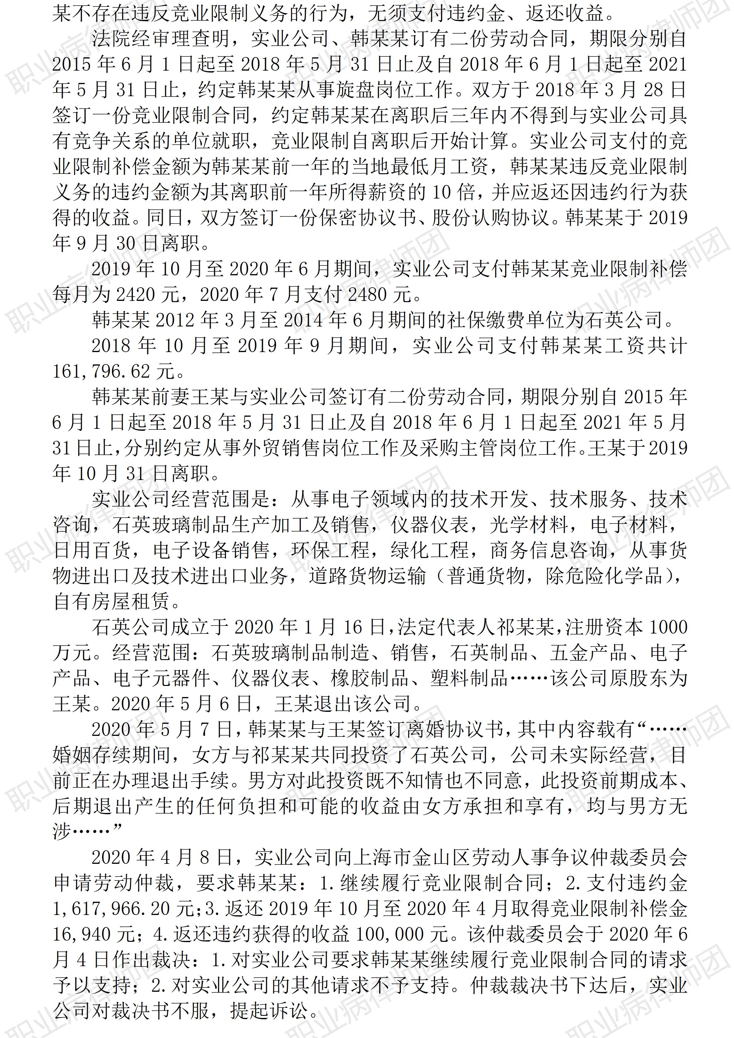 本案案号:(2020)沪01民终13707号 入库编号:2023-07-2-186-001 案例编号:5.1.111 OCA111 【案件简介】 【律师说法】 本案是一宗涉及劳动者通过具有紧密关系的人员规避竞业限制义务引发纠纷的典型案例。 一般意义上的竞业限制,是劳动者离开原用人单位后,本人通过再就业入职新的用人单位或者设立企业等形式从事与原用人单位存在竞争性生产经营业务的情形,由于劳动者本人再就业机会受限,原可依赖的劳动技能、经验受限,必然导致其后续生活、工作带来困难,原用人单位应当支付相应的经济补偿金,由此形成竞业限制关系和相应的权利义务。 但本案则呈现了与上述普通情形大为不同的隐蔽竞业形式,即劳动者本人并不直接入职或者设立企业从事与原用人单位存在竞争性业务,而是绕过这一显而易见的形式约束,转而通过与本人具有特殊紧密关系的人员,逐步实施事实上依然有违竞业限制约定的行为,这其实是一种相对更为隐蔽今后也更为常见的违反竞业限制义务的情形。毕竟,需要履行竞业限制义务的人,往往是拥有独特技能、专长因而对原用人单位核心竞争优势构成相当威胁的人,也正因此这一类劳动者通常在原用人单位就能获得相对较高的劳动报酬,从而也就具有了避免本人直接从事、转而通过配偶、父母子女等具有特殊紧密关系的人员实施突破竞业限制的行为。——到这一步,原有一般意义上的劳动者,其实也悄然转变为与原用人单位所有者相同意义上的非劳动者了。因此,与本人直接从事违反竞业限制的行为相比,这种隐蔽竞业的实施人员相对更应理解和遵守竞业限制的本义,因而也更应承担违约责任;虽然,竞业限制对所有相关劳动者的约束、不便乃至利益减损都是相同的,但毕竟二者在资源、条件等方面所存在的量的差异已经显见。 本案提示劳动者,竞业限制对劳资双方都有约束,任何一方违约均须承担相应违约责任,无论是本人,还是通过家人等其他具有紧密关系的人员实施违反竞业限制的行为,都同样可能触发竞业限制违约责任。 本案同时也提示用人单位,竞业限制违约责任的约定以及因违反竞业限制而诉求违约责任乃至损害赔偿时,应当充分考量相关违约责任约定的合理性,包括劳动者原有工资待遇实际水平、给本单位实际造成的损失程度等,而对于违反竞业限制行为给本单位造成的具体损失,是需要有足够的证据支撑的,不能简单随意提个数字就行了。(2026/1/22 16:17) 【收官】“职业病法律”公众号全部推文汇总(501-1000) 管仕武|关于《职业病诊断与鉴定管理办法》与《职业病防治法》冲突的审查建议 |