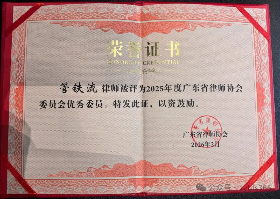 日前,管铁流律师收到广东省律师协会颁发的荣誉证书。此前,经所在行政法专业委员会集体考评、推荐并经广东省律师协会审核,最终,管铁流律师获评2025年度广东省律师协会行政法专业委员会优秀委员。此项殊荣,是广东省律师协会及行政法专业委员会对管铁流律师深耕职业病防治法律服务领域的一次肯定。本次评优,组织方主要考察各委员参与所在专业委员会工作的情况,并从参与频次、工作质量及贡献度等方面综合考评。2025年以来,管铁流律师积极参与行政法专业委员会相关专业工作。2025年4月26日,管铁流律师应邀赴湛江市律师协会为当地律师同仁作了题为《职业病防治中的行政监督职能与争议》主题分享。管铁流律师从职业病诊断与鉴定、职业病工伤认定、劳动能力鉴定、职业卫生技术服务的监管等多个方面,深入剖析当前职业病防治实务中行政监管现状,并提出相应建议。本次分享,受到与会律师同仁及省、市两级律师协会的肯定与好评。能够获此殊荣,管铁流律师衷心感谢省律协及行专委的肯定与鼓励,并表示将再接再励,为行业专业建设略尽绵薄之力。