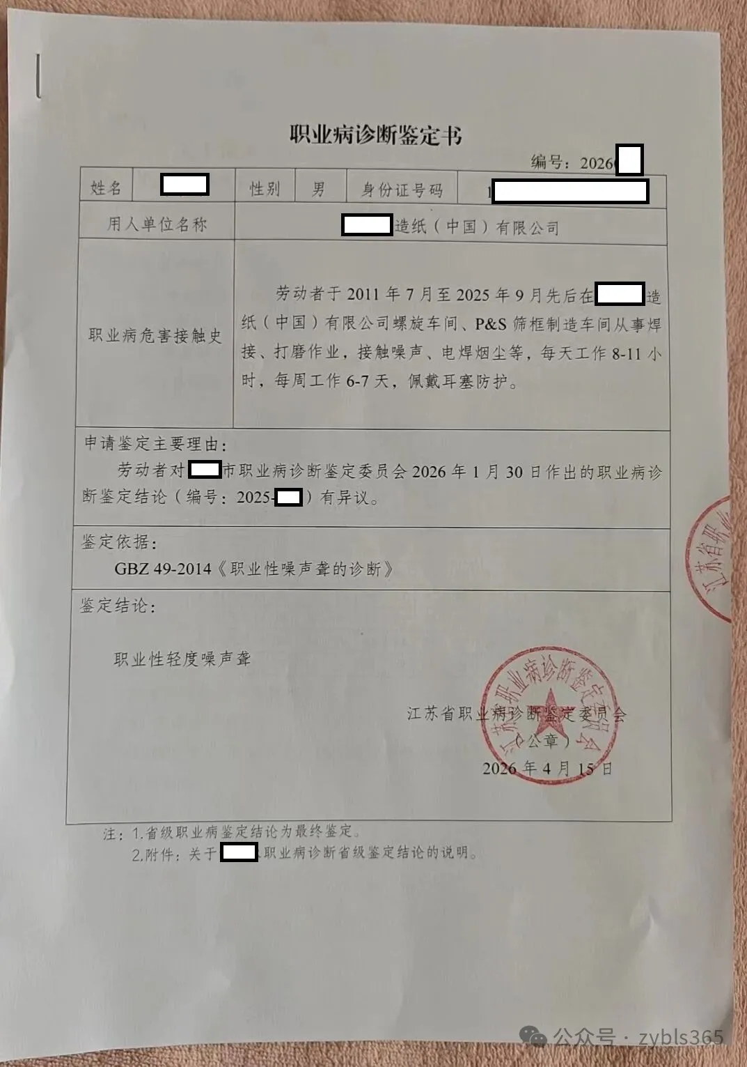 2026年4月17日下午,江苏一位80后电焊工常某某微信告知职业病律师团:刚收到江苏省职业病诊断鉴定委员会办公室寄来的省级鉴定结论,本人已被确诊为职业性轻度噪声聋! 常某某长期从事电焊作业,三年前入职江苏某市一家造纸机械制造企业,从事电焊兼打磨工作,日常工作中需要处理大件金属原材料及半成品,公司的打磨、焊接、成型等岗位均在同一车间,过程中长期接触超标噪声。公司虽然有安排职业健康检查,且常某某的体检结论也多次提示听力异常,但公司生产中的噪声环境却无法有效改善,导致常某某虽然名义上有调岗安排,但调岗之后也仍然持续接触到较高噪声。2025年公司借故辞退常某某,常某某要求公司公司安排离职前职业健康检查未果,随后申请劳动仲裁诉求赔偿金,目前该案尚在仲裁审理中。常某某同时申请了职业病诊断,但此前的诊断及首次鉴定结论均为不能确诊职业性噪声聋。 常某某对用人单位违法辞退非常不满,也对先后两次不能确诊职业病倍感困惑。为了更好维护自身合法权益,在依法申请省级职业病诊断鉴定后,常某某慕名求助管铁流律师及职业病律师团,并在初步沟通后很快正式委托。 2026年4月15日,管铁流律师与常某某及家属一道,赴江苏省职业病诊断鉴定委员会参加省级职业病鉴定会。会前一天,由于接连接待临时约见的当事人,职业病律师团全天忙于接待咨询和办理委托事宜。管铁流律师与实习律师管仕武当晚继续深入研究本案相关材料,对照相关职业性噪声聋诊断标准反复计算,最终,管仕武发现,依据此前职业病诊断机构与市级鉴定机构固定的相应病历资料,即使按照本人历次听力检查的最好(最小)数值,也依然能够推导出其听力损失完全达到确诊职业病的标准。为此,职业病律师团专门制作了多达9页的代理意见,并组织了数十页证据。 本次省级职业病鉴定会上,管铁流律师首先提交了书面代理意见及再次鉴定的全部证据,然后在常某某陈述的基础上,简要强调了常某某应予确诊职业病的相关分析。最后,管铁流律师强调指出,从现有证据材料看,常某某的听力损失已经完全达到确诊标准,市级鉴定机构计算存在明显错误,退一步说,就算其听力损失检查结果存在一定波动,导致依据相关诊断标准计算的最终听力值与确诊标准略有差距,考虑到用人单位诸多违反职业病防治法定义务的情形,尤其是违法辞退,而带着明显受损的听力和此前体检机构作出不规范的职业禁忌结论,常某某再就业已极为困难,其长期积累的电焊作业经验将无法继续发挥作用,本人的电焊职业就此终止,并且在脱离噪声职业环境之后,其甚至都很难再次获得职业病诊断机会,因此,省级鉴定将其听力受损依法确诊为职业病,完全合法、合理。 本次鉴定会,全体专家围绕常某某工作环境进行了超过一个小时的严谨调查,向劳资双方深入询问核实,并当场调阅了用人单位相关资料。最终,省鉴定委确诊常某某所受听力损伤为职业性轻度噪声聋。职业病律师团认为,这是鉴定专家及省级鉴定机构在充分考量患者病情及综合案情的基础上专业而彰显人文关怀的权威结论。 衷心祝福常某某及其家人! 向江苏省职业病诊断鉴定委员会本次鉴定工作全体鉴定专家致敬! 职业病法律维权,我们,职业病律师团,将一如继往,受人之托,忠人之事,全力以赴。(2026/4/17 18:04) 【收官】“职业病法律”公众号全部推文汇总(501-1000) 管仕武|关于《职业病诊断与鉴定管理办法》与《职业病防治法》冲突的审查建议 |